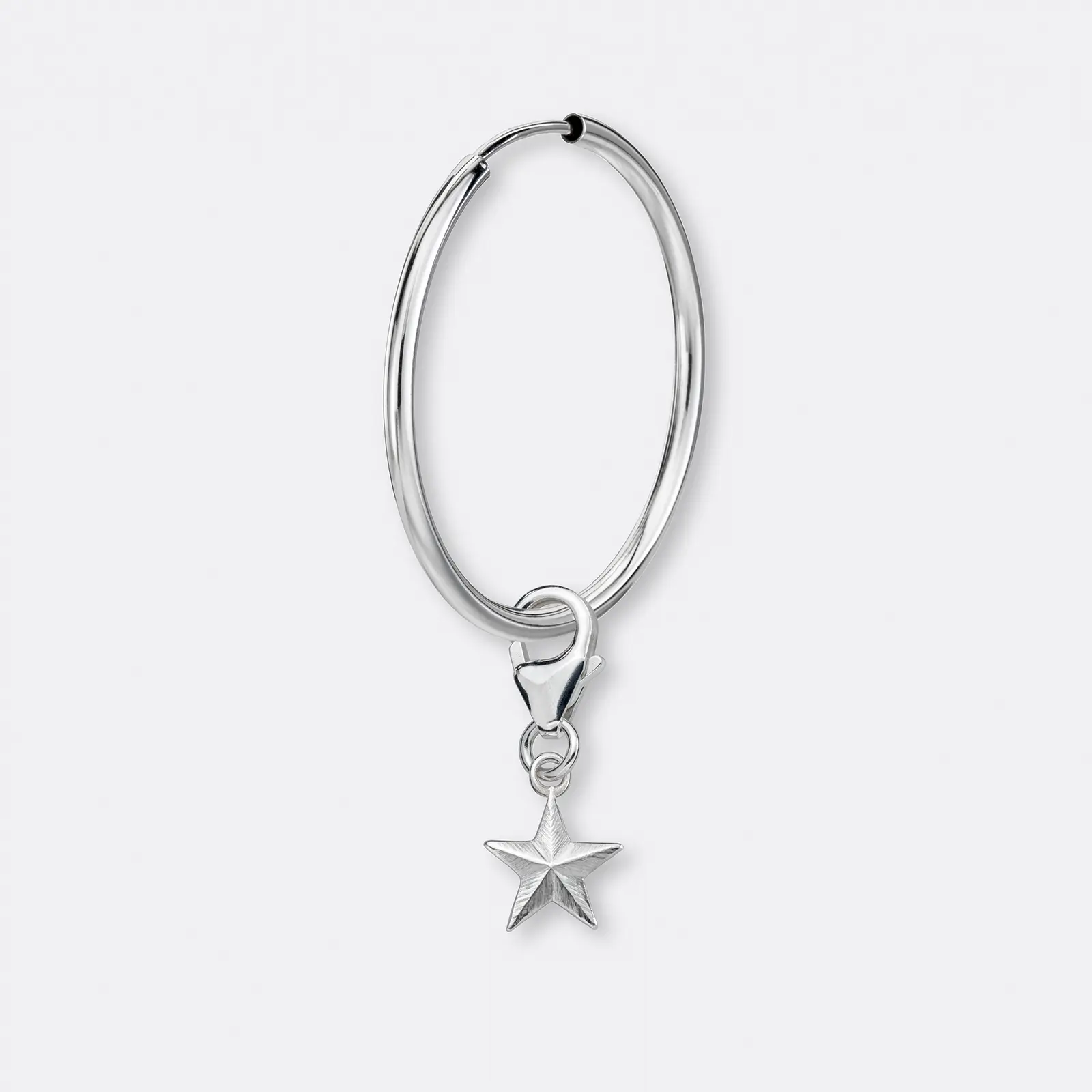Silberne VfB Ohrring Creolen mit VfB Charm Anhänger Meisterstern aus 925er Silber. Ein echtes Statement für wahre VfB-Fans: Dieser hochwertige VfB Stuttgart Charm an einer Creole aus echtem Silber vereint Tradition, Stolz und handwerkliche Perfektion. An deiner Creole ist unser Charm Meisterstern mit einem kleinen Karabiner befestigt. Der Meisterstern steht für alle unvergesslichen Meisterschafts-Erfolge und die vielen großen Momente des VfB Stuttgart. Gib deinem individuellen Look damit die spezielle VfB-Note.